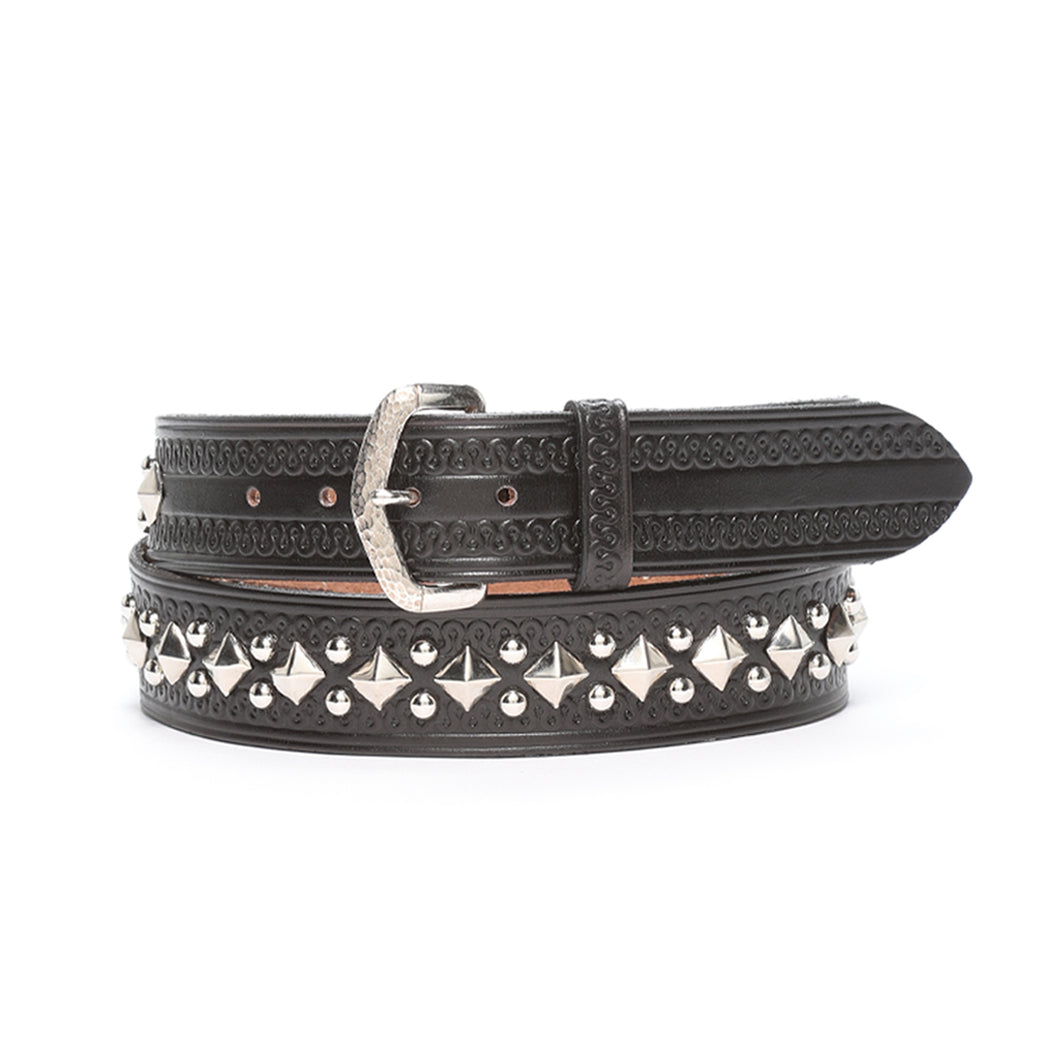 ヴィンテージ・バックルを使用したスタッズベルトです。